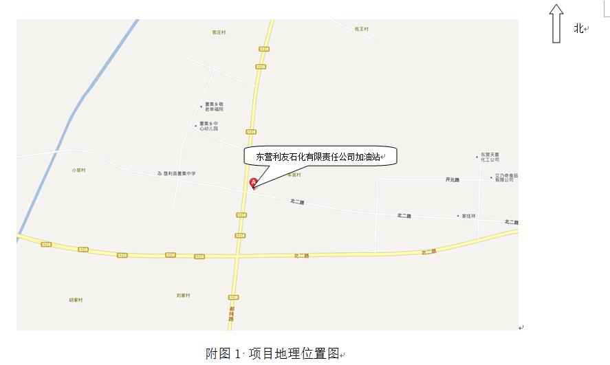 東營利友石化有限責(zé)任公司加油站位于董集鄉(xiāng)政府南東利路(老北二路)與董勝路(S316)交匯處。該加油站東面為民房,西面為民房與瀝青罐(罐已停用),距離南側(cè)公路約15m,路對面為經(jīng)銷商店,北面為該公司的油庫(已停用),罐區(qū)與油庫的6個廢棄立式油罐相鄰,再往北為民房建筑。 |