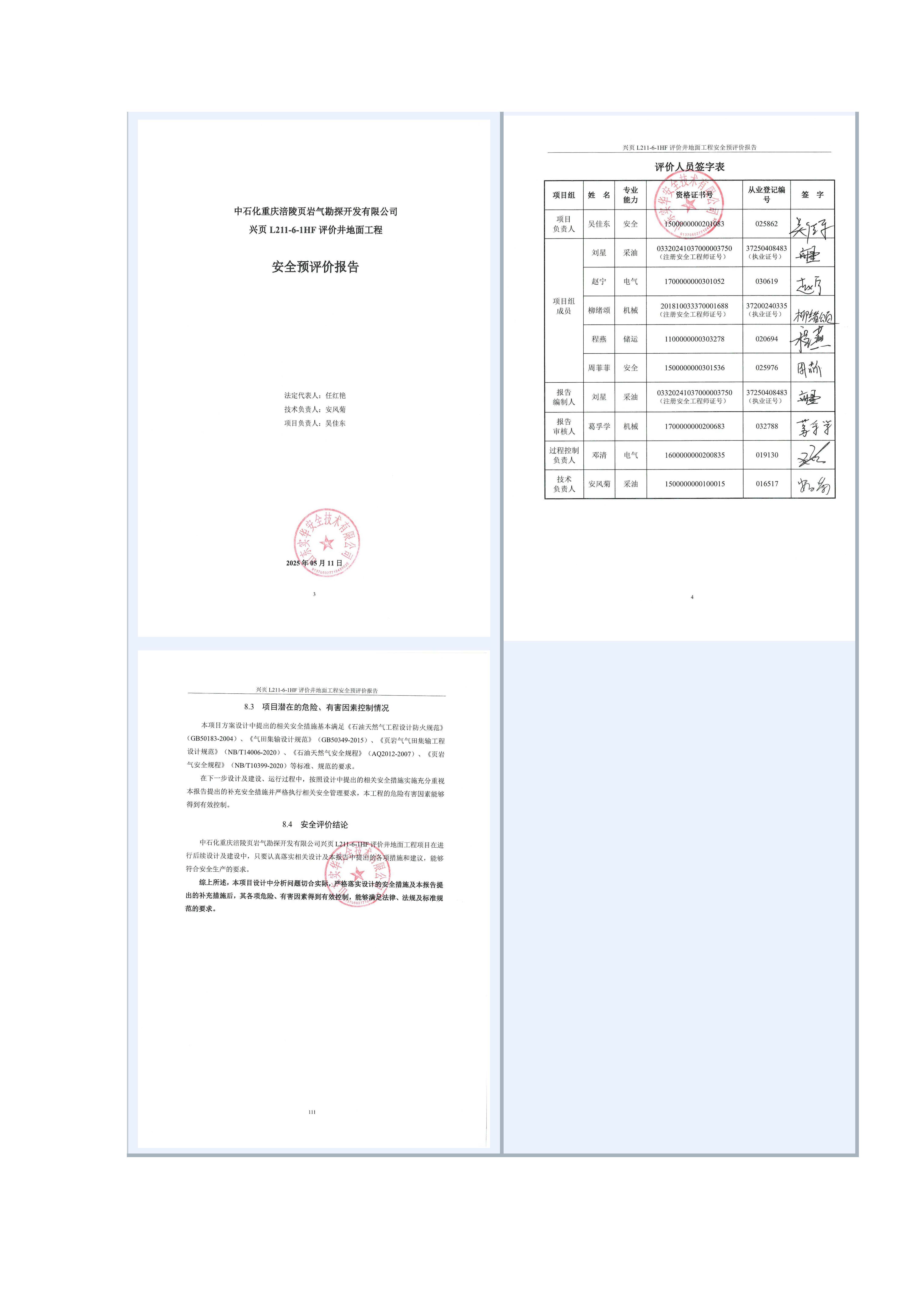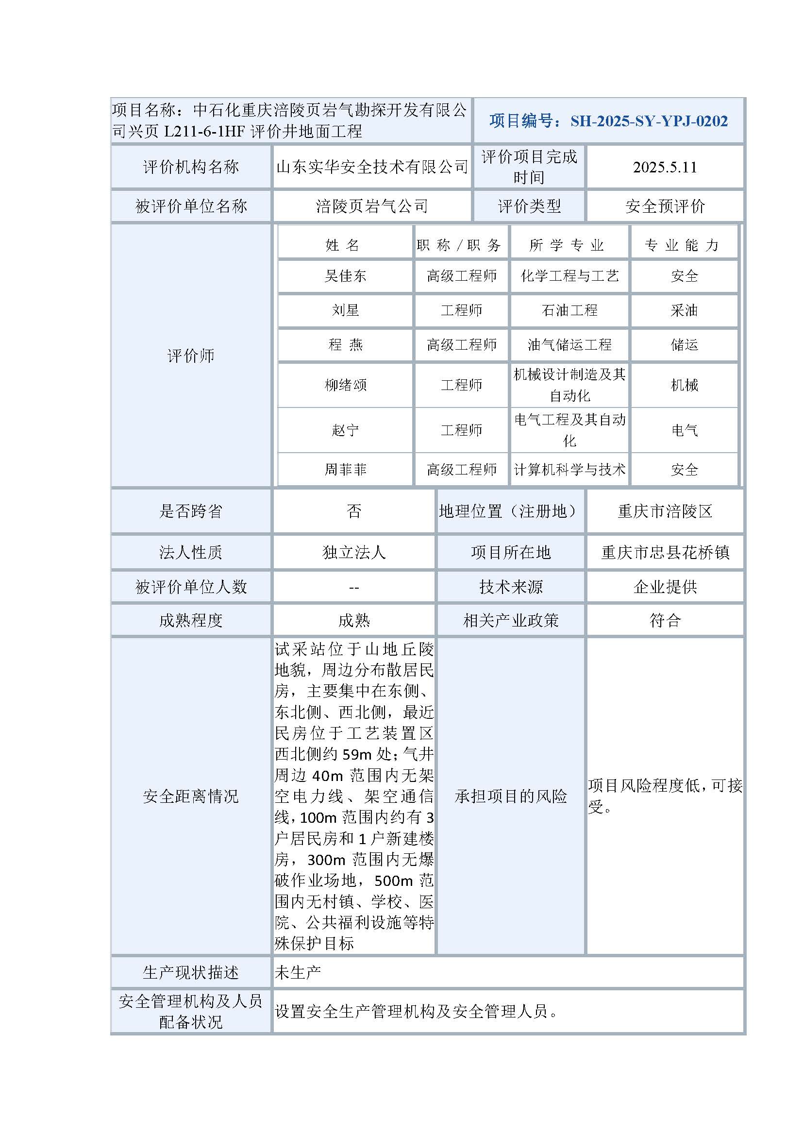 中石化重慶涪陵頁巖氣勘探開發(fā)有限公司興頁L211-6-1HF評價井地面工程安全預(yù)評價