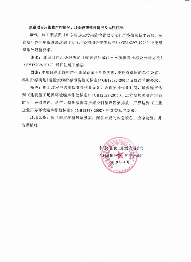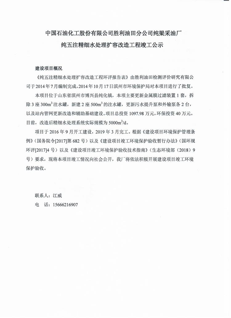 中國石油化工股份有限公司勝利油田分公司純梁采油廠純五注精細(xì)水處理擴(kuò)容改造工程竣工公示